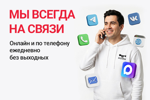 horn.market не теряется! Мы всегда здесь – наши специалисты работают без выходных, чтобы ваш бизнес или ваши покупки не стояли на паузе. Какой бы канал вы ни выбрали, вы получите качественную консультацию и профессиональную поддержку.